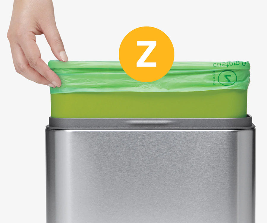 Our code Z compostable custom fit liners fit our compost caddy perfectly with no ugly overhang, and are certified compostable so you can throw them out and they will decompose completely.