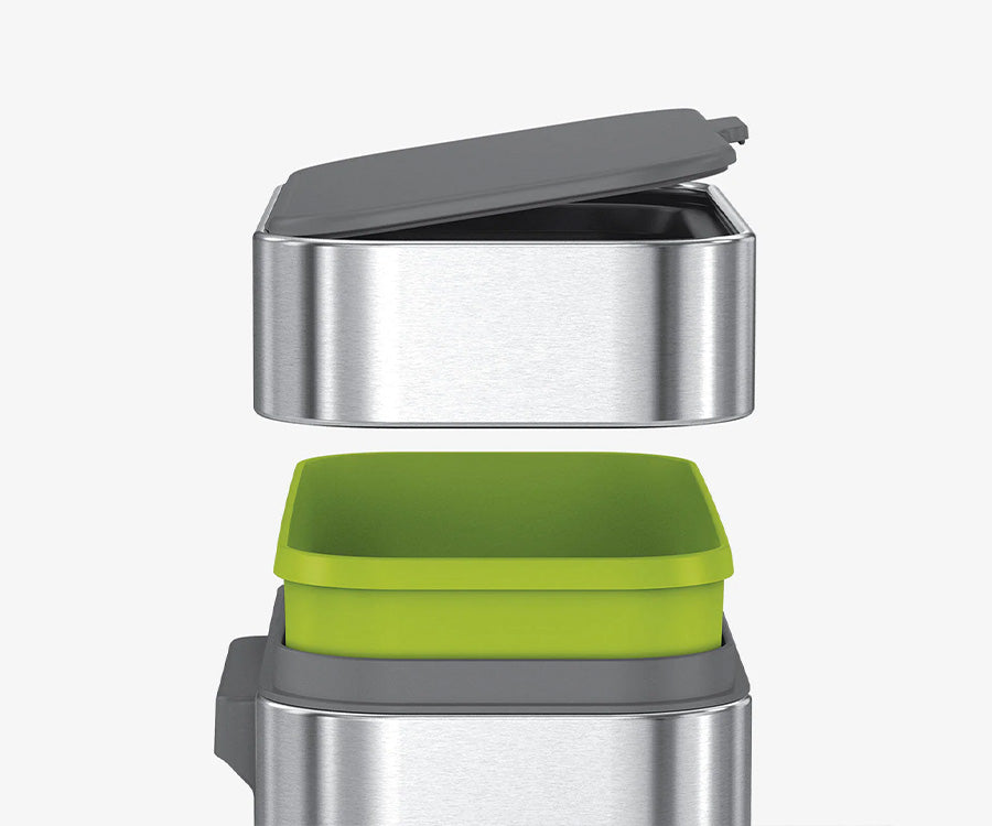 Soft-seal lid allows organics to breathe, keeping odours like banana peels under control and pests like fruit flies away.